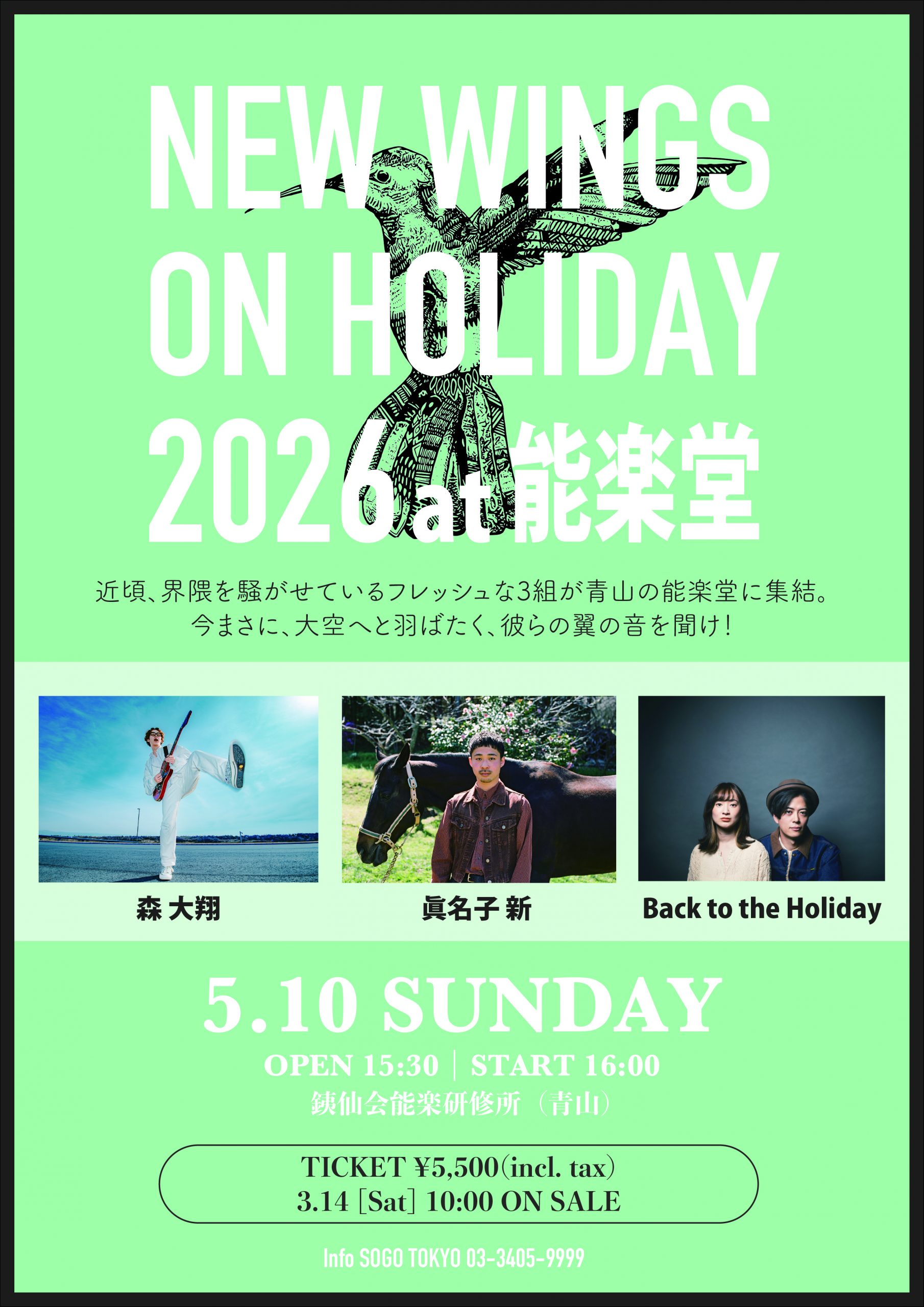 5月10日(日)に、青山の能楽堂で開催される「NEW WINGS ON HOLIDAY 2026 at 能楽堂」に出演が決定いたしました!
